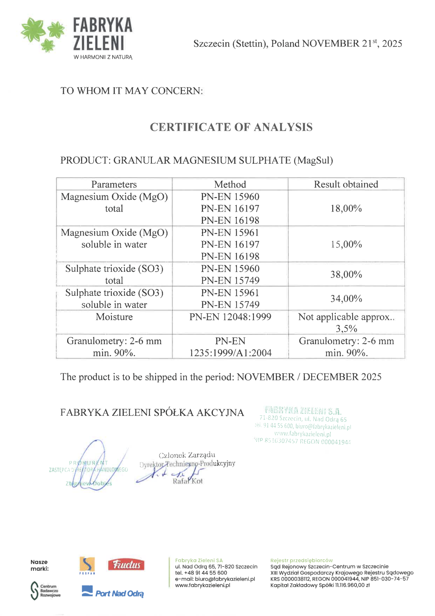- Optimal sulfur and magnesium nutrition for high yields. The fertilizer provides a balance of key elements, supporting the stable development of crops and their resistance to stressful conditions.