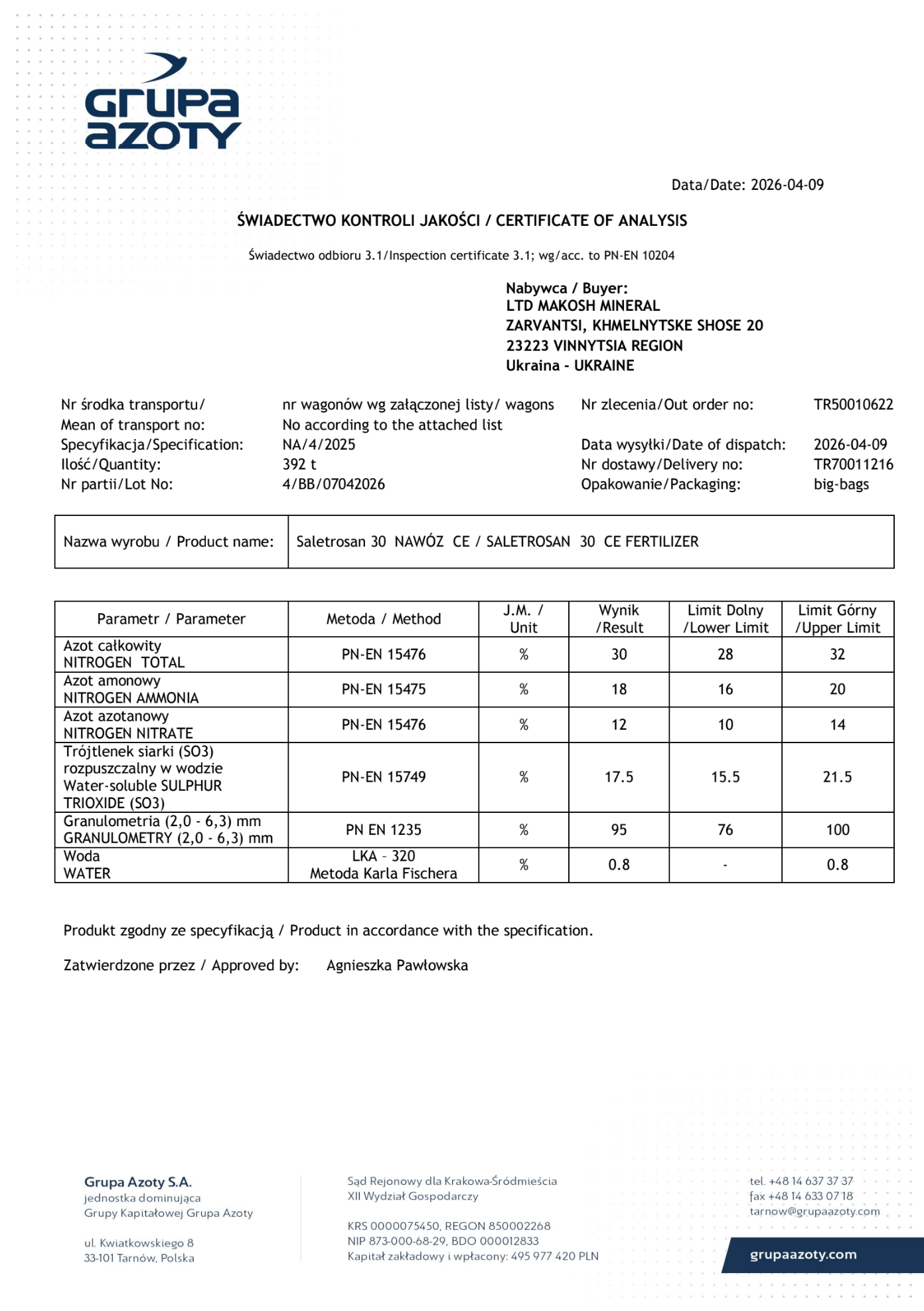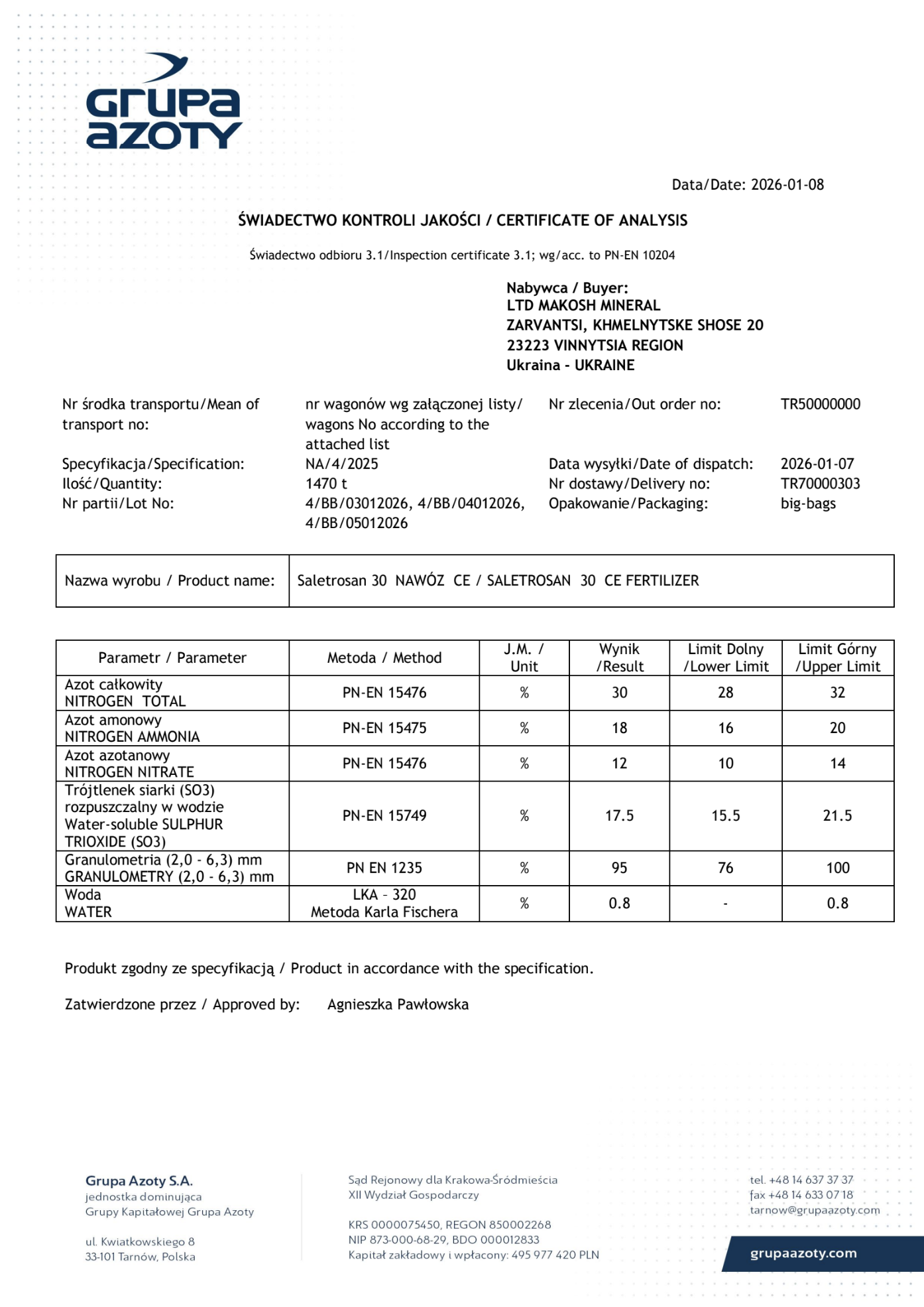 - GRUPA AZOTY S.A., POLAND