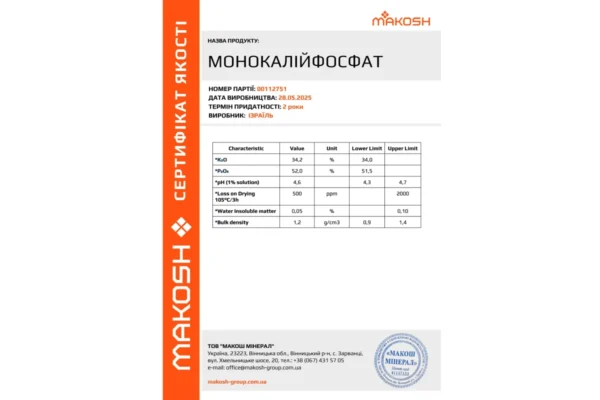 - High degree of solubility for effective application. The fertilizer dissolves quickly, which guarantees instant absorption of nutrients by plants and maximum fertilization efficiency.