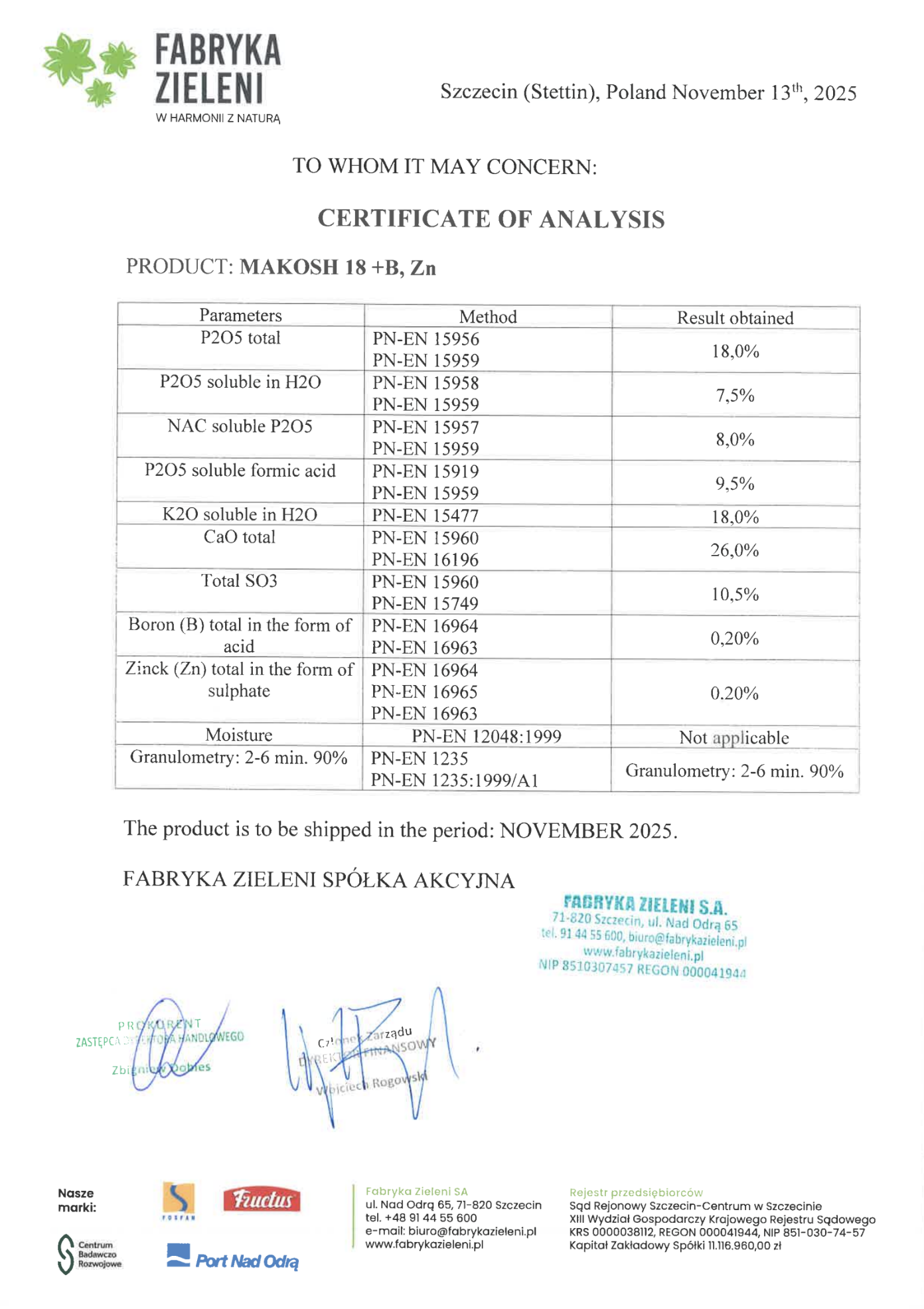 - Maximum yields thanks to micronutrients. The presence of calcium, sulfur and trace elements helps to realize the yield potential, improving the quality and quantity of products.