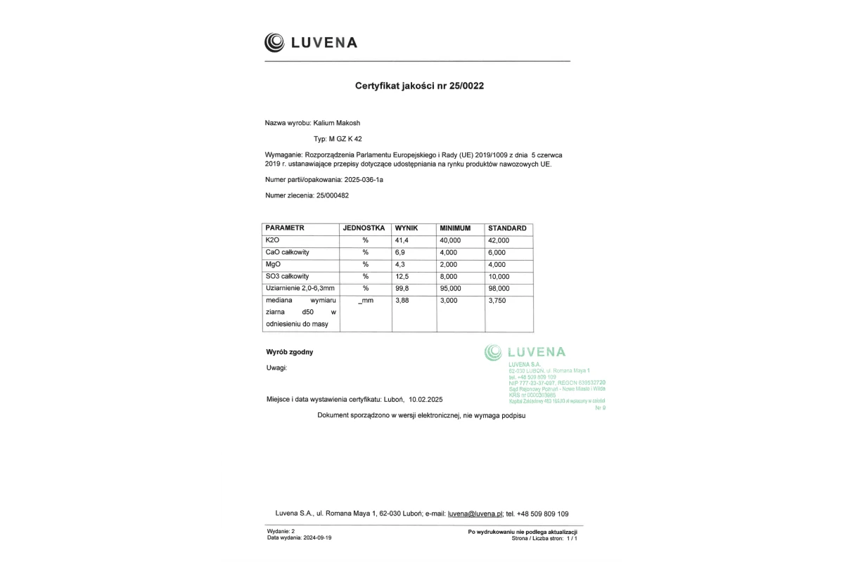 • Підвищує стійкість рослин та забезпечує надійний захист. Калійне добриво сприяє зміцненню імунітету рослин, підвищує стійкість до хвороб, шкідників та несприятливих погодних умов, допомагаючи аграріям мінімізувати ризики втрат урожаю.
