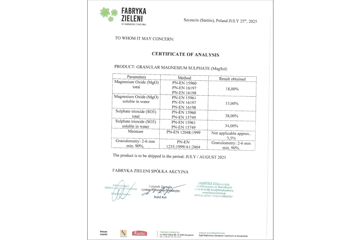 - Оптимальне сірчане та магнієве живлення для високої врожайності. Добриво забезпечує баланс ключових елементів, підтримуючи стабільний розвиток культур та їхню стійкість до стресових умов.