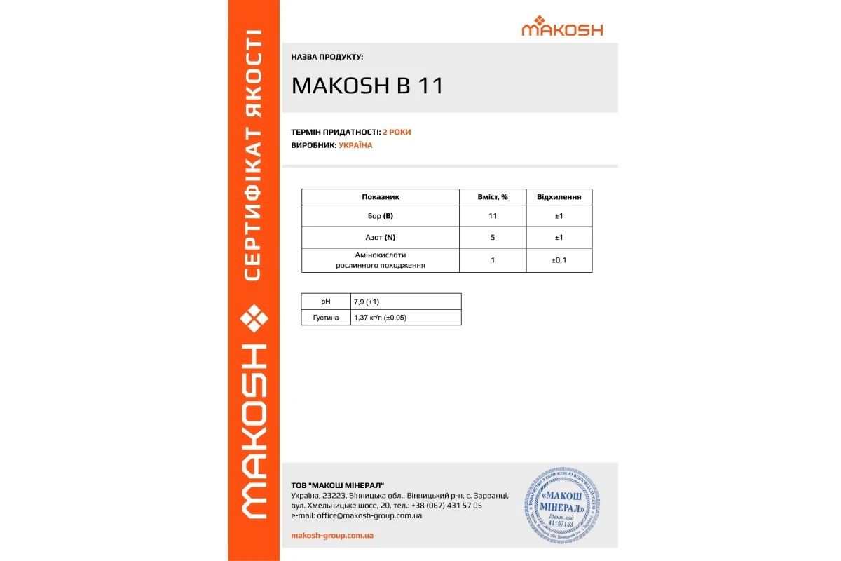 • Необхідне для культур, чутливих до борного дефіциту. Рекомендовано для цукрового буряка, ріпаку, сої, соняшнику, фруктових дерев, овочів та картоплі, підтримуючи оптимальне живлення та розвиток.
