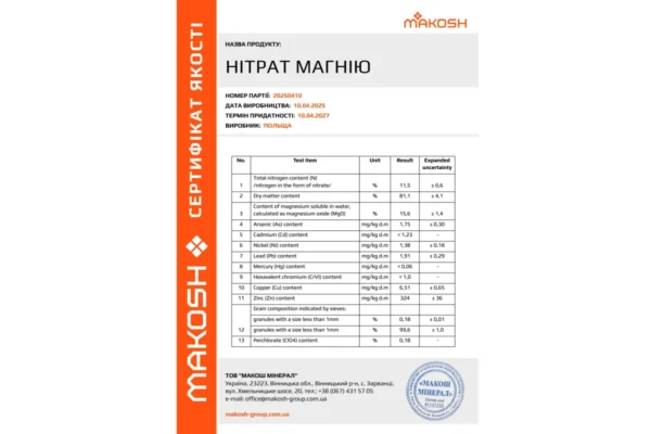- Ефективне живлення культур, читливих до нестачі магнію. Добриво ідеально підходить для краплинного зрошення та гідропоніки, забезпечуючи повноцінне живлення рослин без ризику осаду.