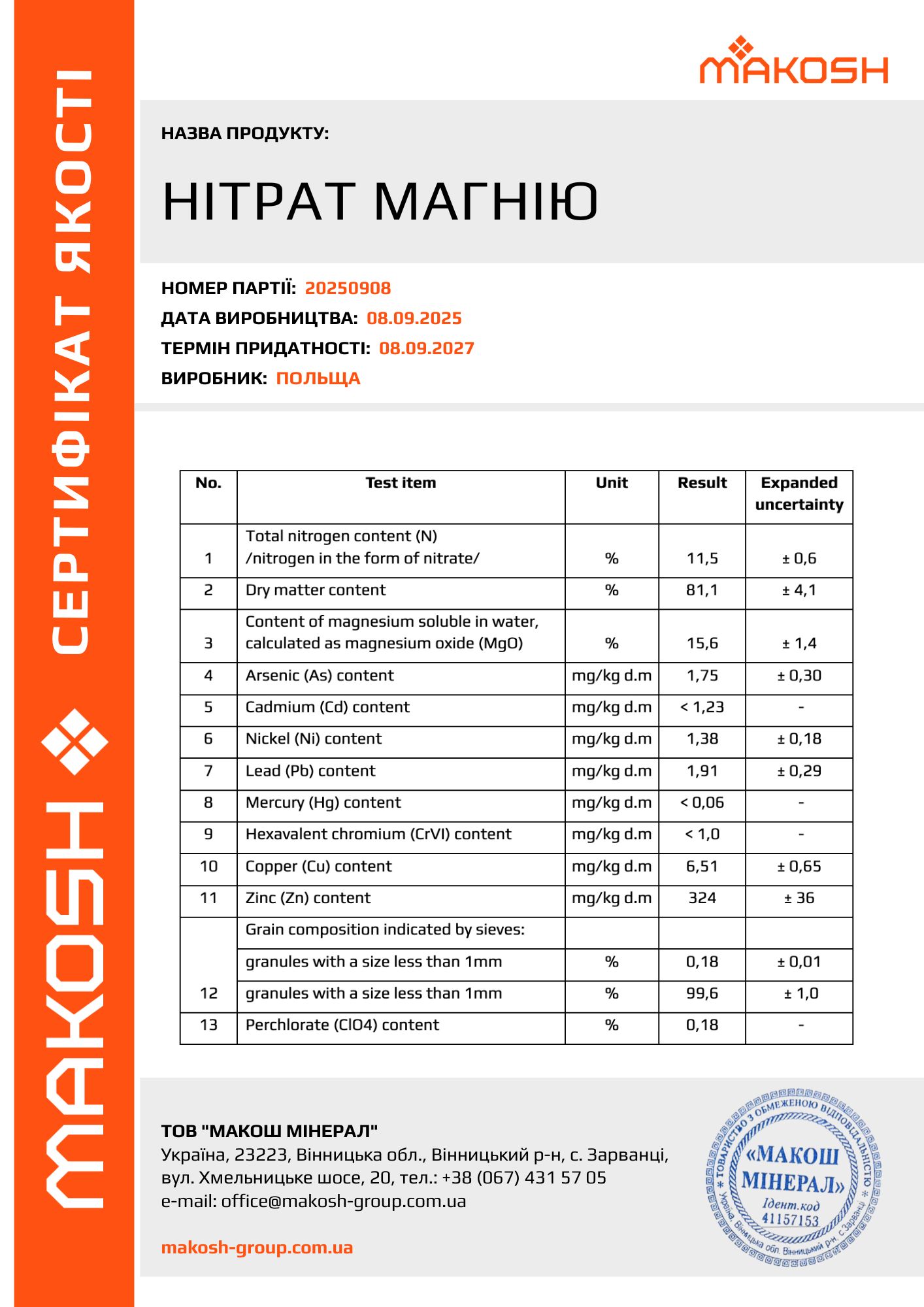 - Ефективне живлення культур, читливих до нестачі магнію. Добриво ідеально підходить для краплинного зрошення та гідропоніки, забезпечуючи повноцінне живлення рослин без ризику осаду.