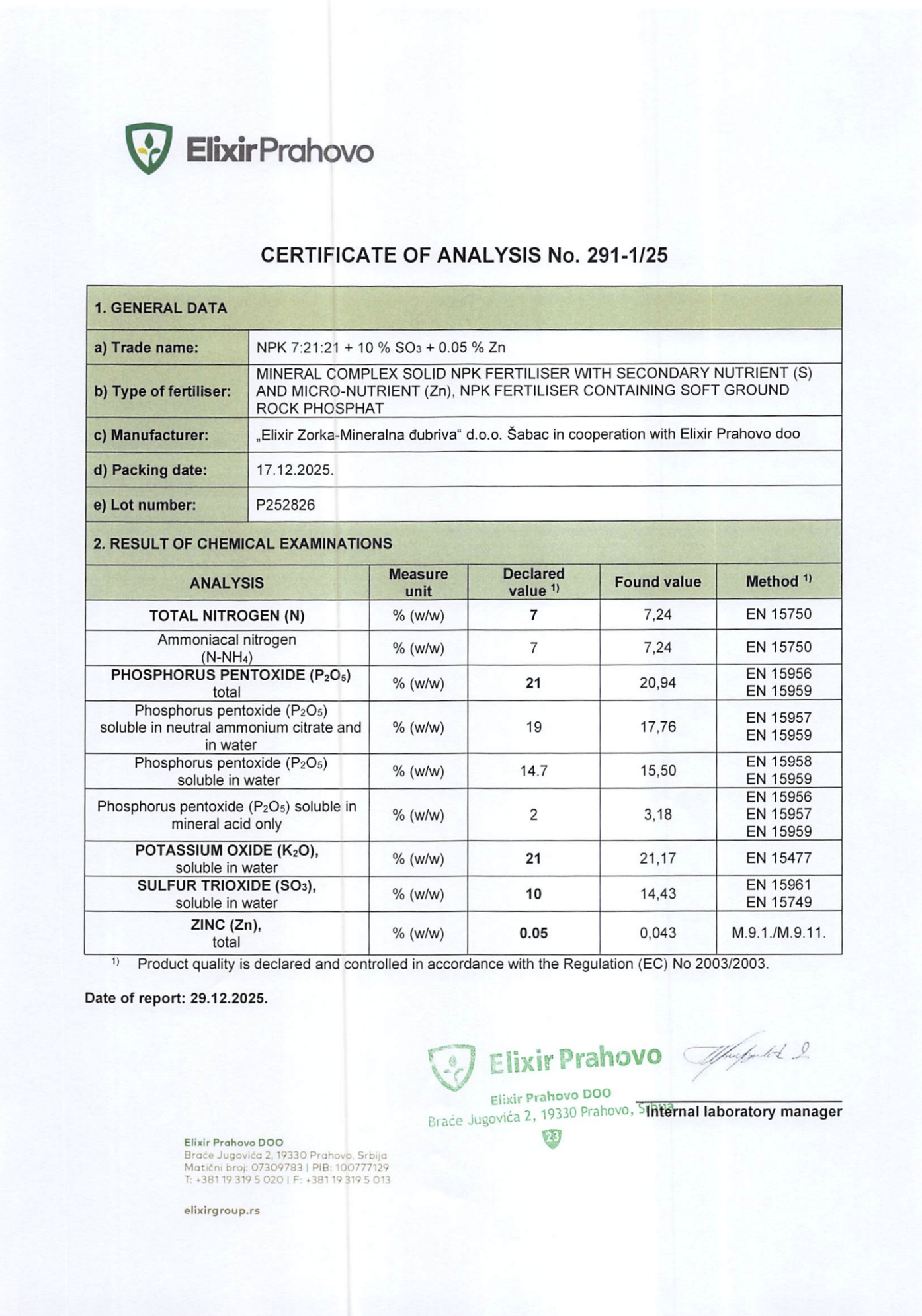 - 21%П'ятиокис фосфору (P₂O₅), загальний