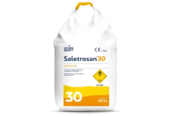 - Мінімальні втрати азоту. Saletrosan 30 можна залишати на поверхні ґрунту – вивітрювання азоту зведене до мінімуму, що гарантує максимальну ефективність живлення.