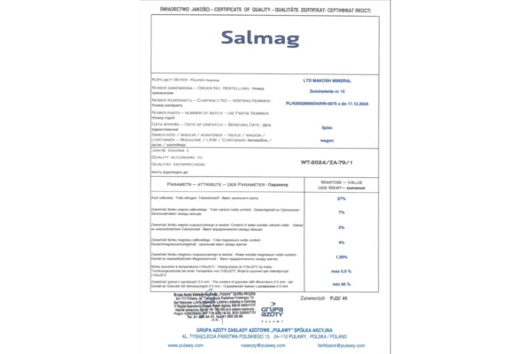 - Дві форми азоту для оптимального живлення. Містить нітратний (13,5%) та амонійний (13,5%) азот, що забезпечує швидке засвоєння та тривалу дію, підтримуючи стабільний ріст рослин.