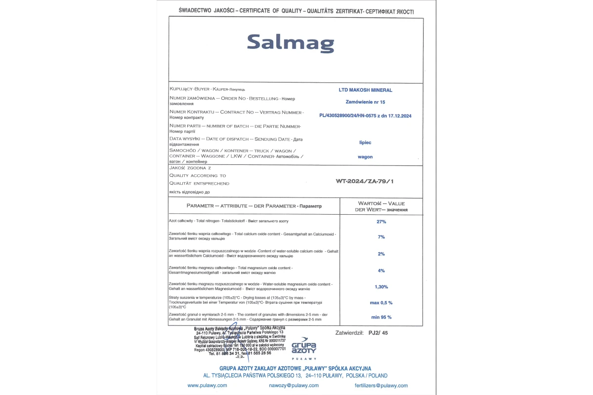 - Дві форми азоту для оптимального живлення. Містить нітратний (13,5%) та амонійний (13,5%) азот, що забезпечує швидке засвоєння та тривалу дію, підтримуючи стабільний ріст рослин.