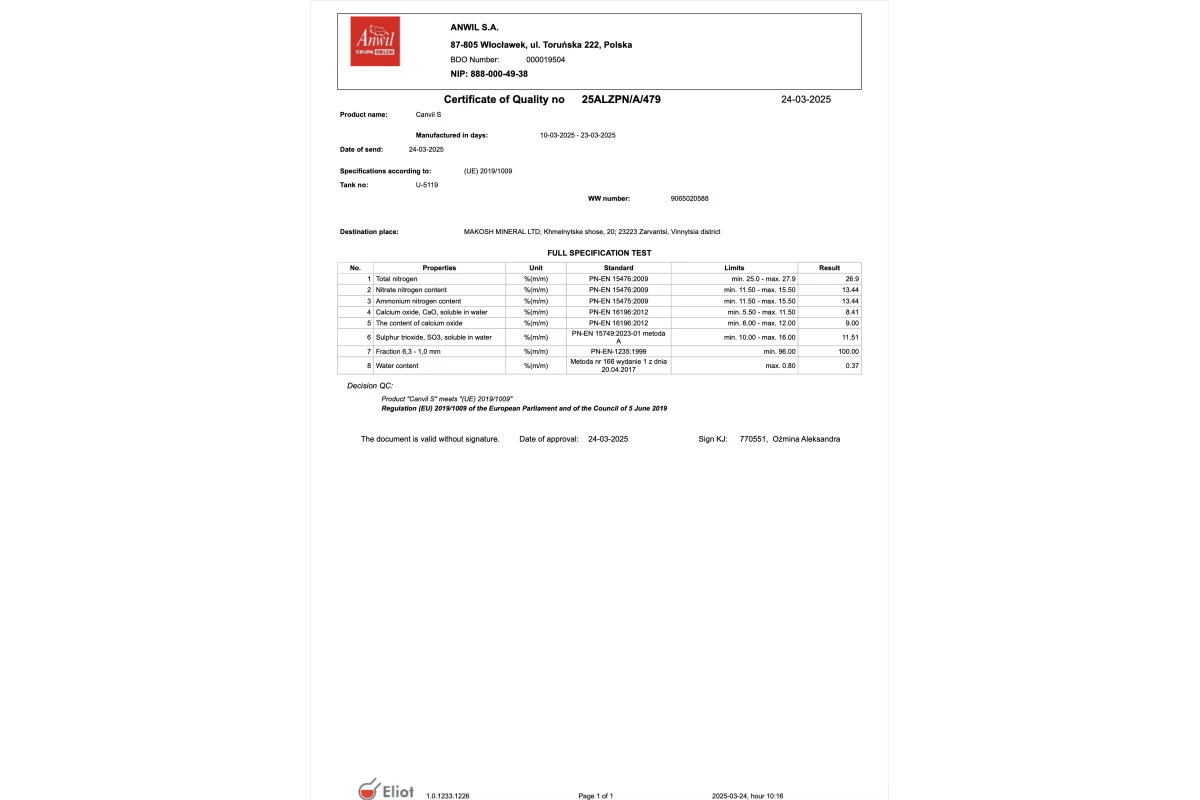 - Дві форми азоту + додаткова сірка. Поєднання нітратного та амонійного азоту разом із легкозасвоюваною сіркою гарантує повноцінне живлення, сприяючи інтенсивному росту та стійкості рослин.