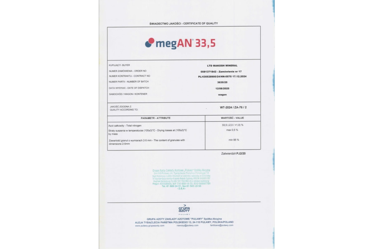 • 33,5%Азот загальний (N)