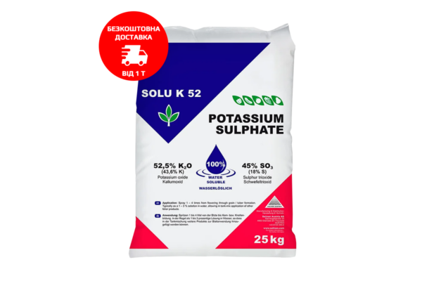 • Безхлорна сульфатна форма калію – максимальна доступність. Завдяки високій розчинності, добриво забезпечує швидке засвоєння калію та сірки, покращуючи живлення рослин без ризику токсичних впливів.