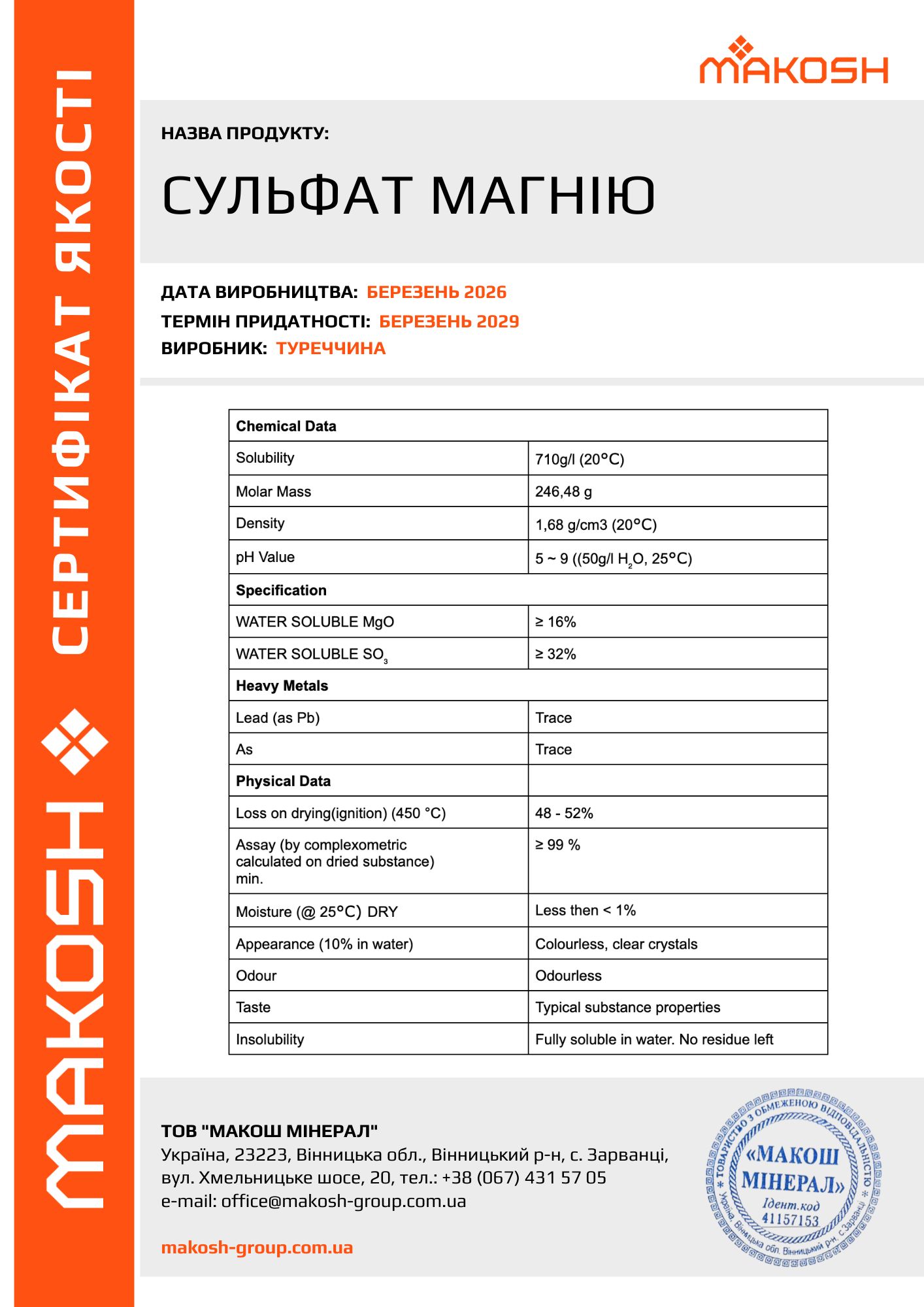 - 16%Магній (MgO)
