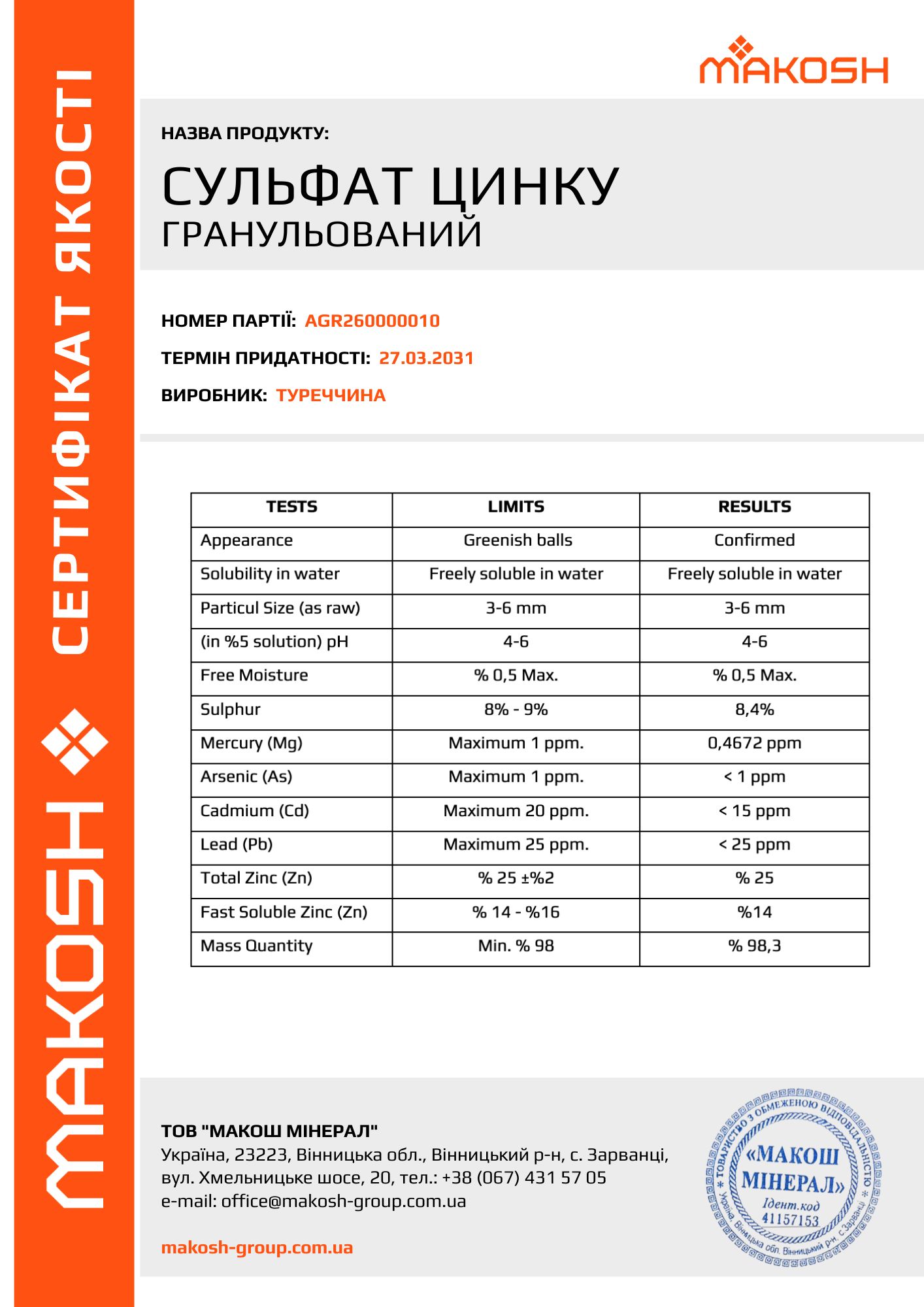 Сульфат цинку гранульований