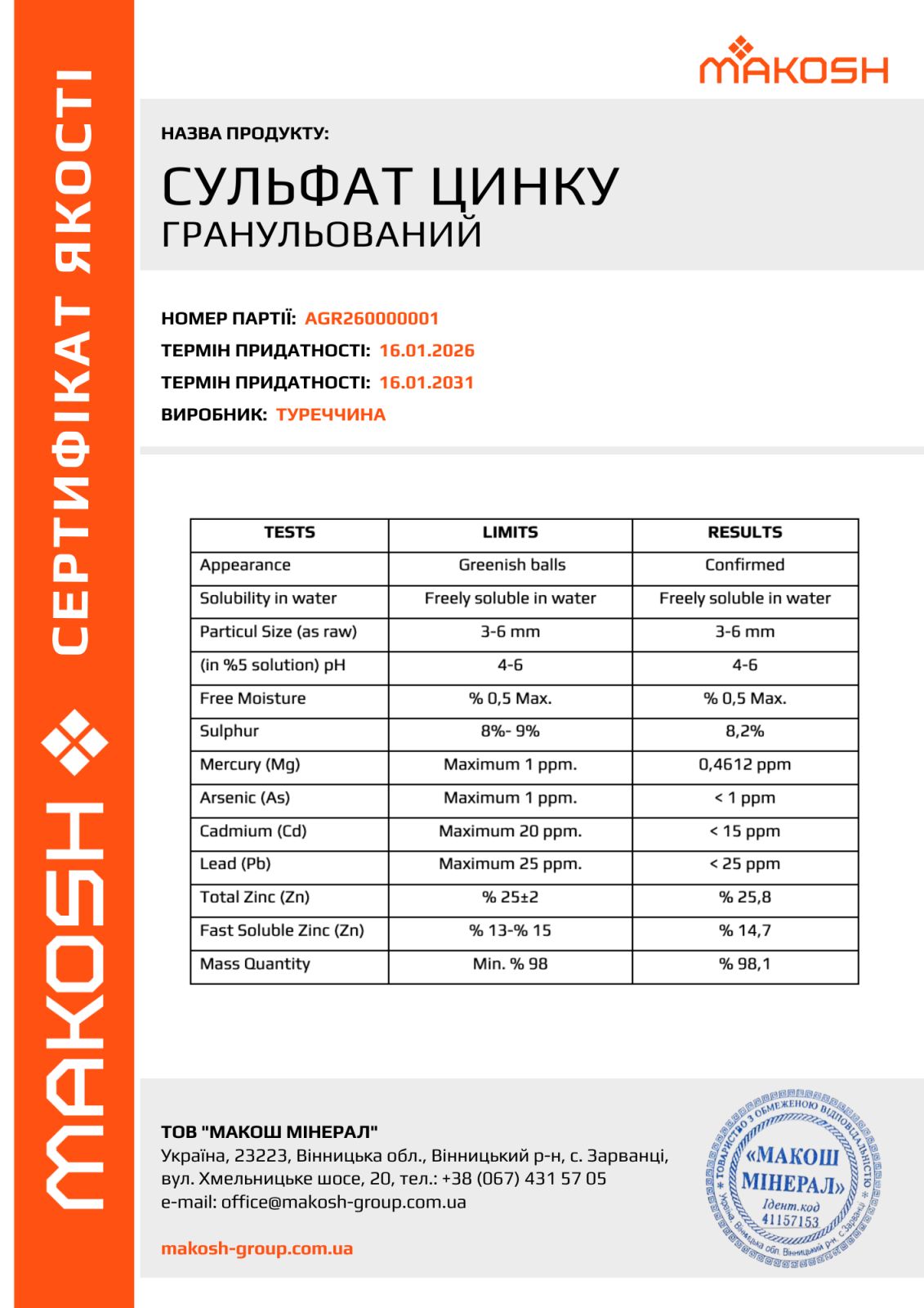 - Висока концентрація цинку – менші норми внесення. Завдяки високому вмісту діючої речовини, добриво потребує знижених норм внесення, забезпечуючи економічну ефективність без втрати продуктивності.