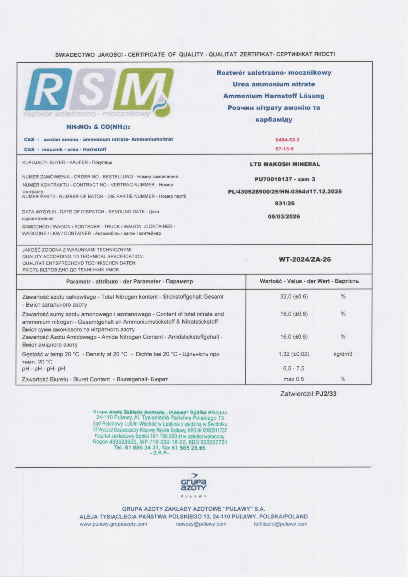 - Жидкая форма — удобство и минимизация потерь. Благодаря равномерному распределению, удобрение снижает потери азота и обеспечивает эффективное внесение, оптимизируя использование ресурсов.