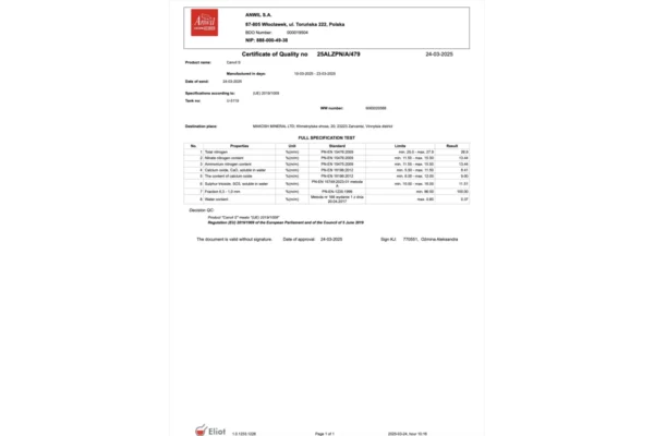 - Две формы азота + дополнительная сера. Сочетание нитратного и аммонийного азота вместе с легкоусвояемой серой гарантирует полноценное питание, способствуя интенсивному росту и устойчивости растений.
